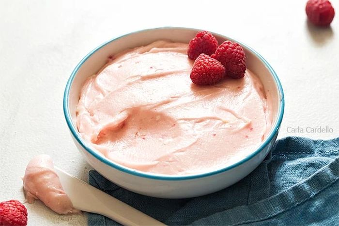Вам знадобиться: малина, вершки для збивання або густий йогурт, підсолоджувач.